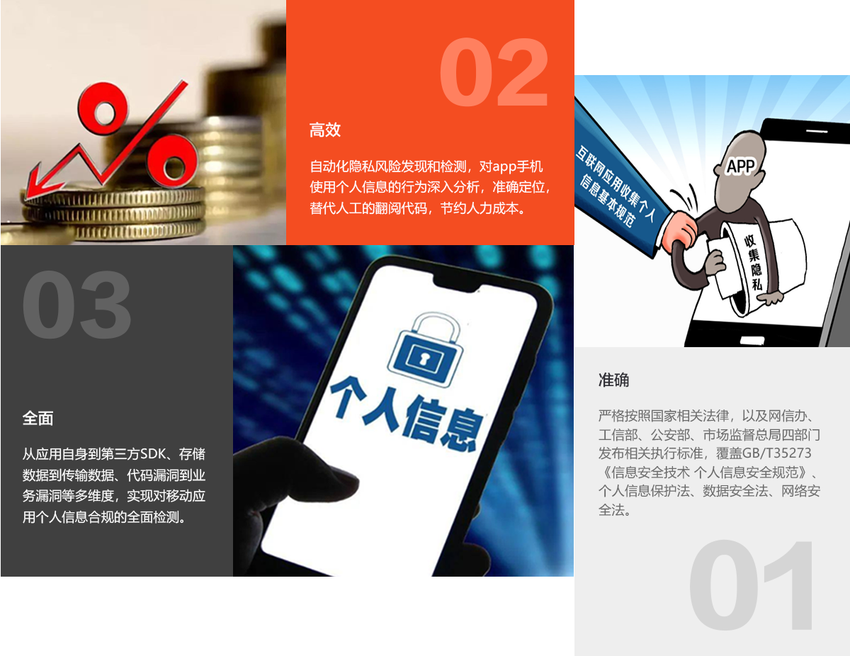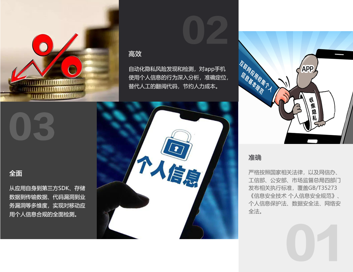 为移动应用提供多方位加固,提高应用自我防御能力,防止应用被恶意攻击,提供应用安全加固、检测、个人信息合规服务。为企业核心资产保驾护航。