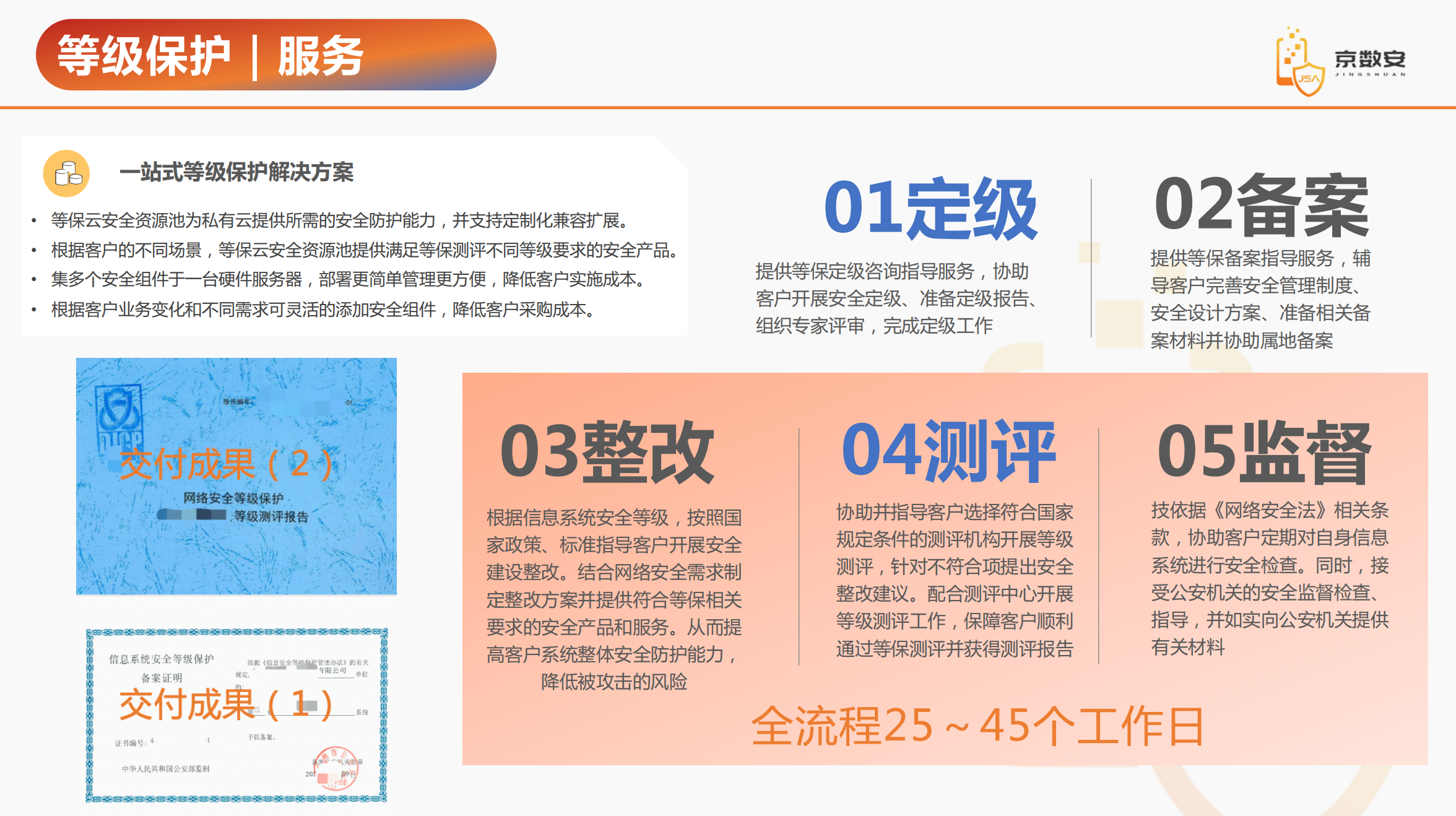 等保测评(网络安全等级保护测评) 是指依据国家《网络安全法》《信息安全技术 网络安全等级保护基本要求》(GB/T 22239-2019)等相关标准,对信息系统进行安全评估,确保其达到相应等级的安全保护能力。京数安(北京)科技有限公司作为专业的安全咨询公司,提供全流程等保合规服务,帮助客户顺利通过测评,满足监管要求。